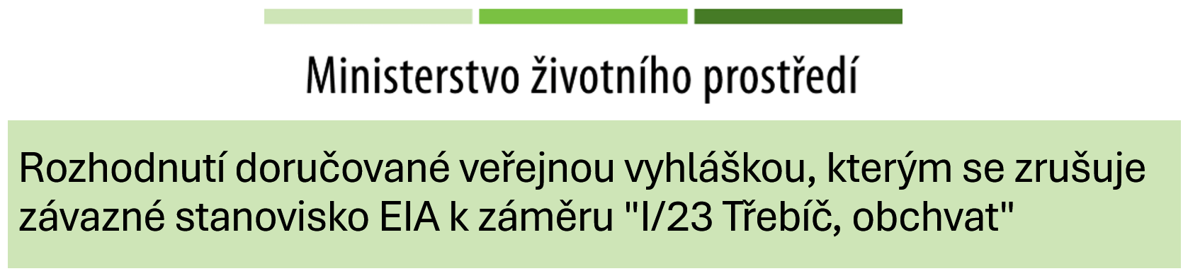 Neschopnost vedení třebíčské radnice, ŘSD, úředníků Krajského úřadu v Jihlavě a jimi najatých odborníků při přípravě podkladů pro průchvat shledalo i Ministerstvo životního prostředí a zrušilo závazné stanovisko EIA Krajského úřadu ze dne 15.01.2024 kvůli jeho nezákonnosti.