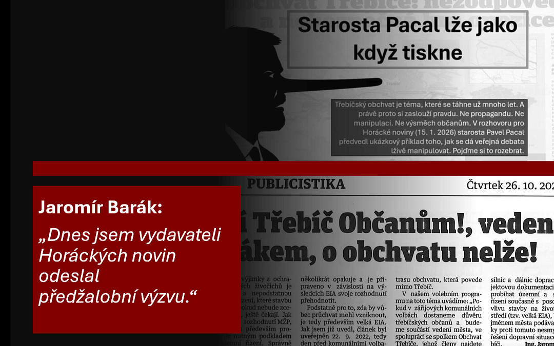 Den před komunálními volbami v roce 2022 otiskly Horácké noviny článek s názvem „Proč hnutí Třebíč Občanům!, vedené Jaromírem Barákem, lže o obchvatu?“.